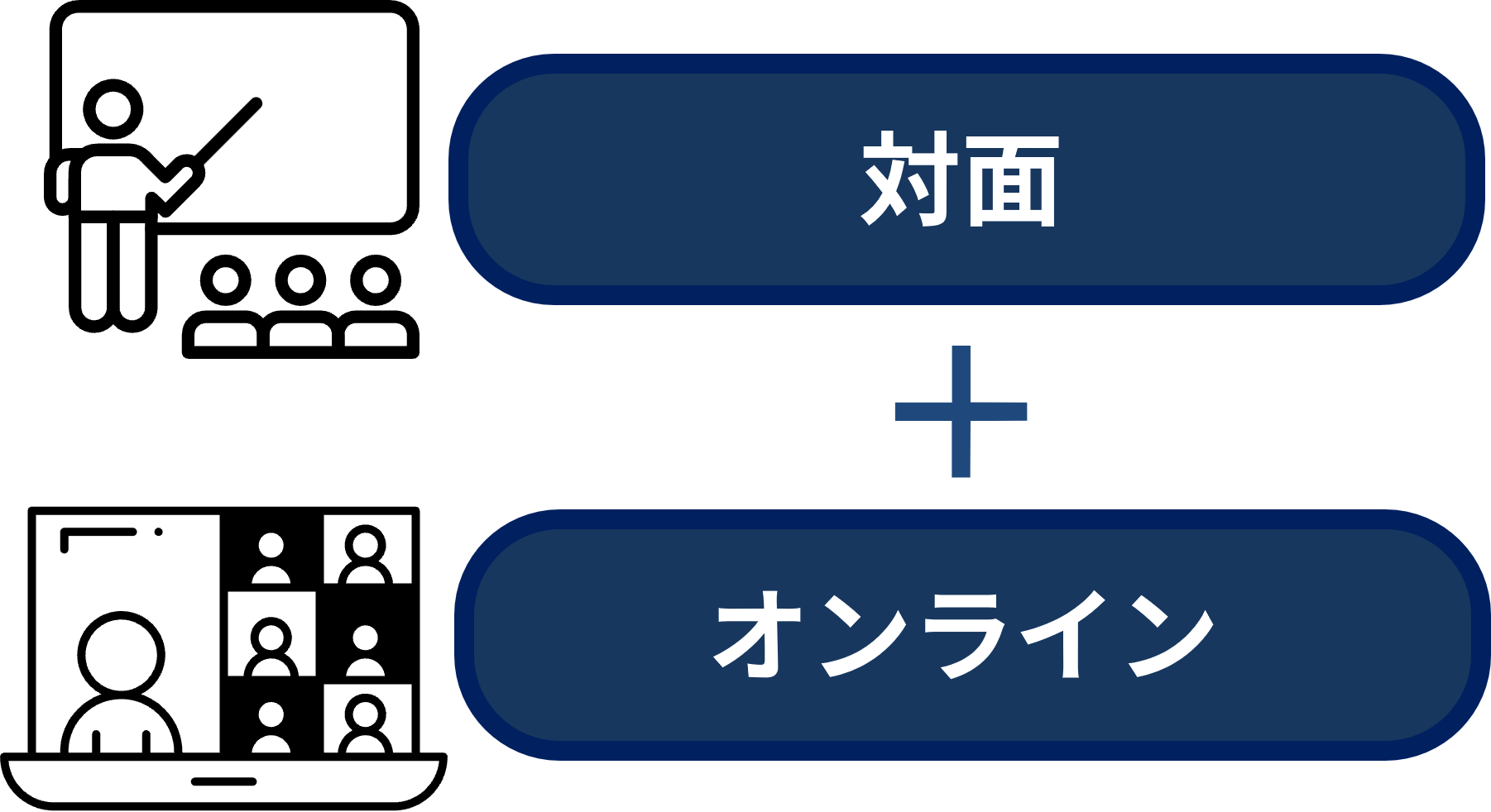 講師と参加者が対面で対話を行い、研修を実施、リアルでのコミュニケーションや相談が可能